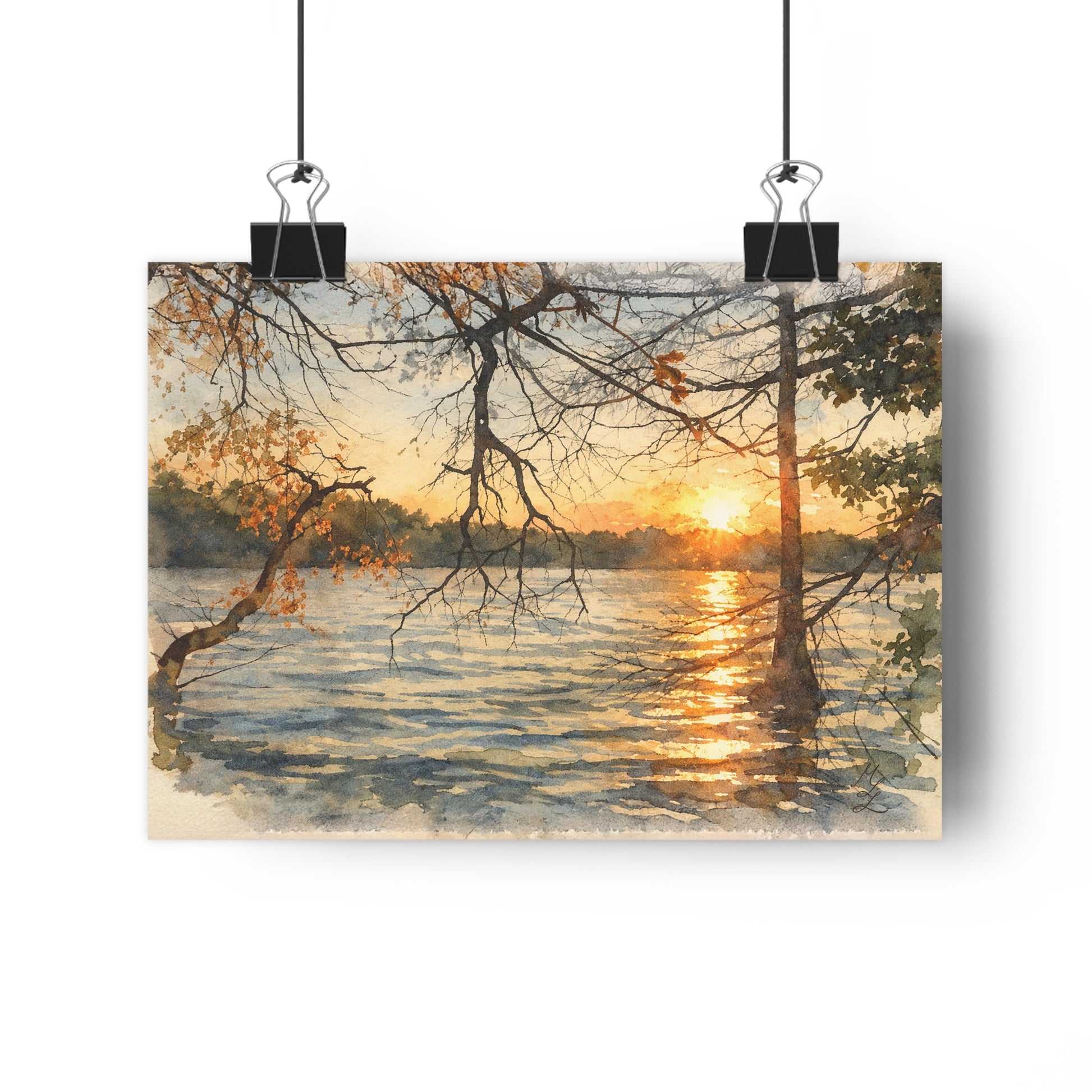Rendered in a traditional watercolor style, Last Light captures the stillness that settles just before evening fully arrives. The piece carries a sense of pause and completion, bringing warmth and calm to a space without overwhelming it.