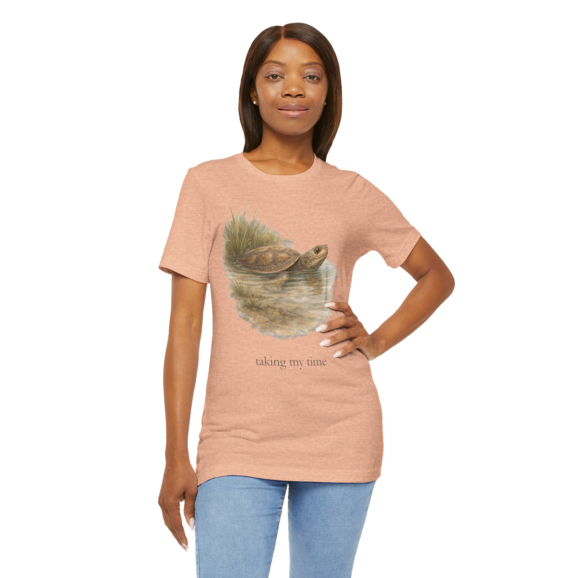 This design holds gentle patience and grounded calm, a reminder that progress doesn’t need urgency to be real. Printed on a soft, lived-in tee, it feels easy and familiar from the first wear.